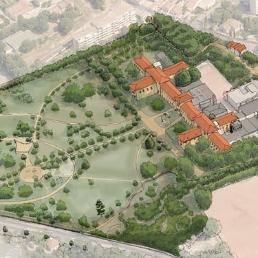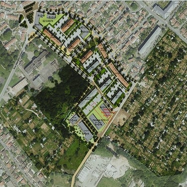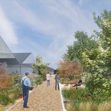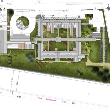 Dans le cadre de la création de 80 logements pour résidents en situation de handicap, conception d'un parc d'un hectare au profit d'un horizon thérapeutique